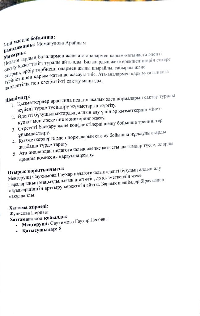 «БІРТҰТАС ТӘРБИЕ» БАҒДАРЛАМАСЫ ІС-ШАРАЛАРЫ