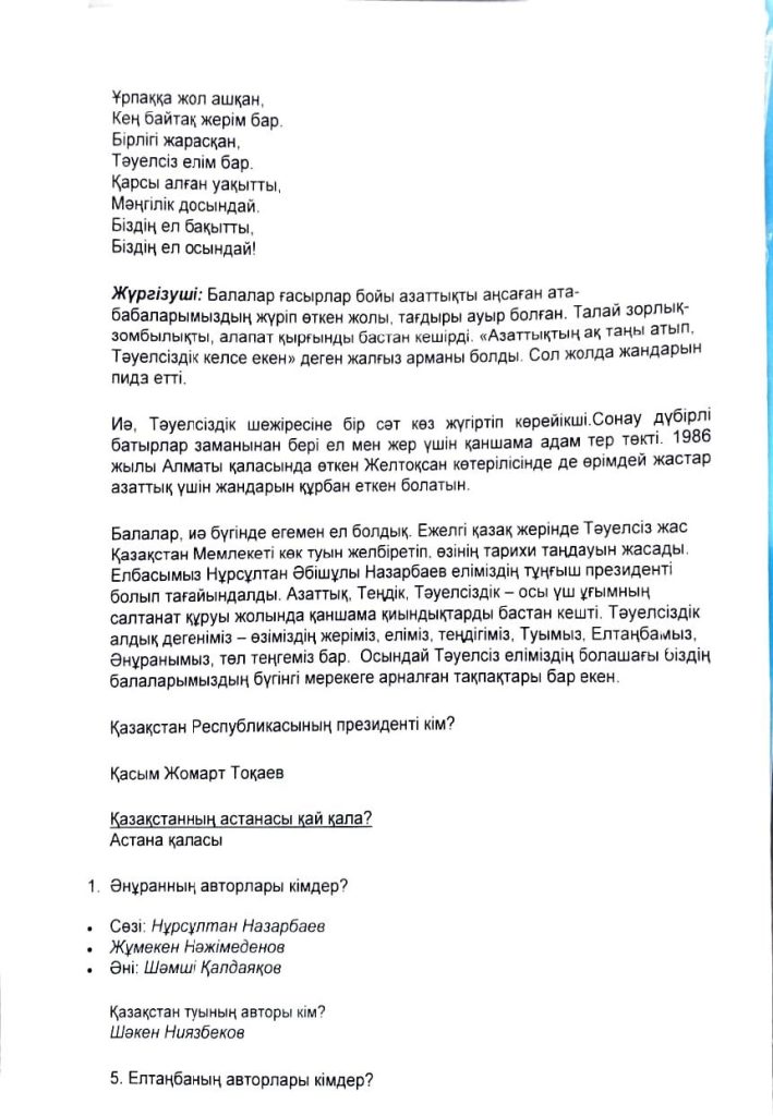 «БІРТҰТАС ТӘРБИЕ» БАҒДАРЛАМАСЫ ІС-ШАРАЛАРЫ