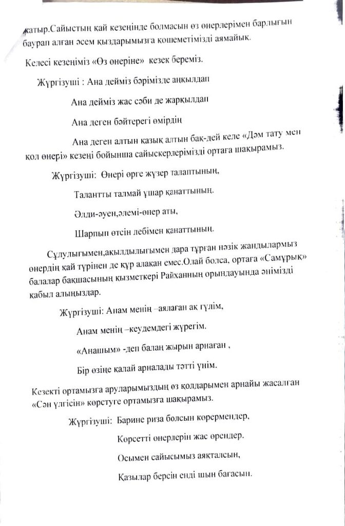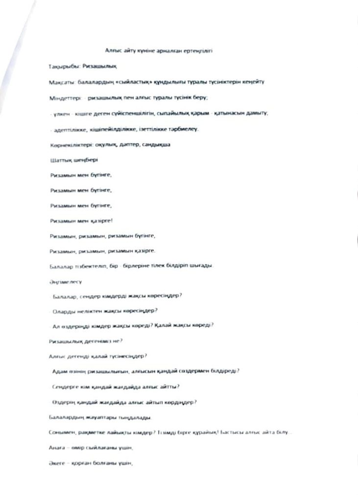 БАЛАЛАРДЫҢ АС МӘЗІРІ