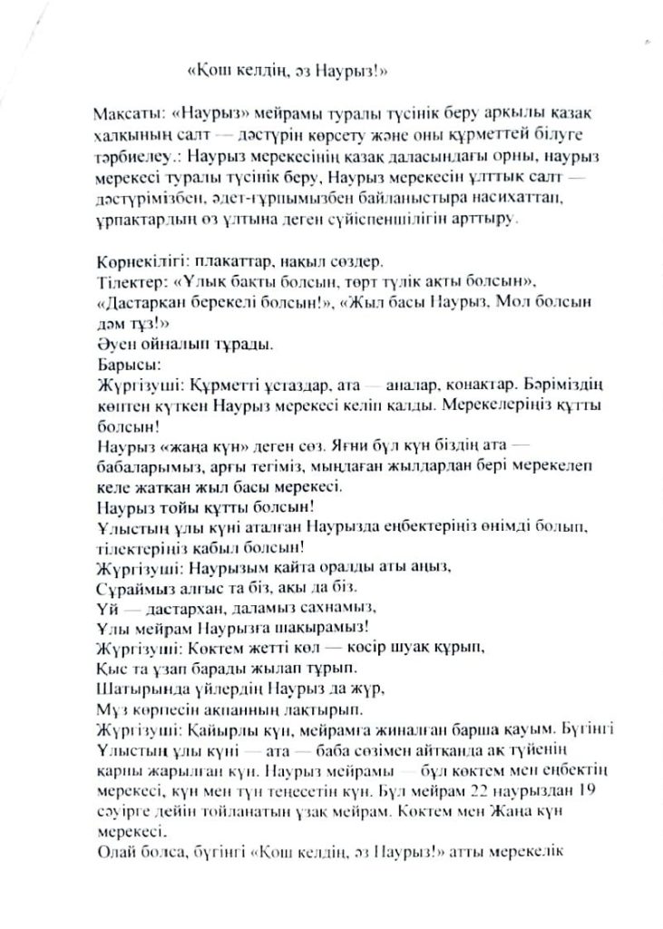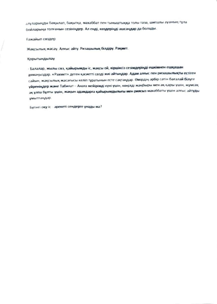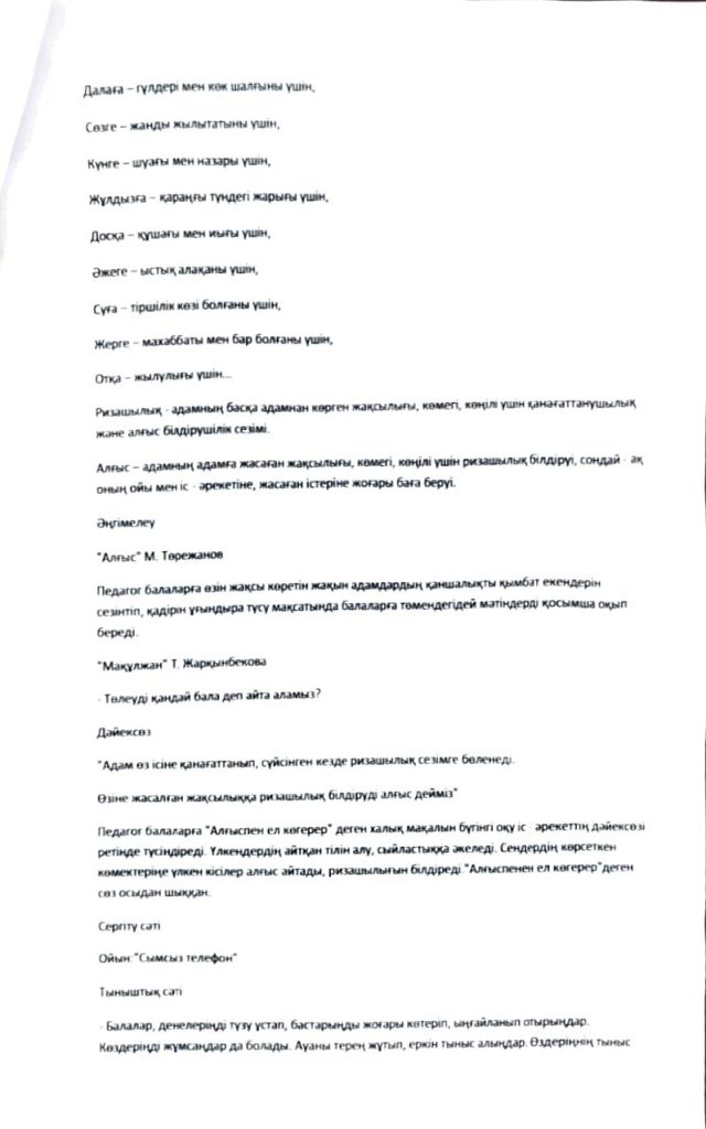 «БІРТҰТАС ТӘРБИЕ» БАҒДАРЛАМАСЫ ІС-ШАРАЛАРЫ