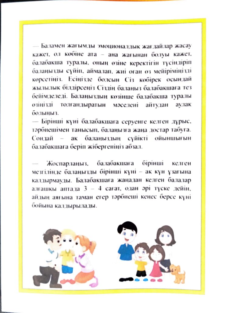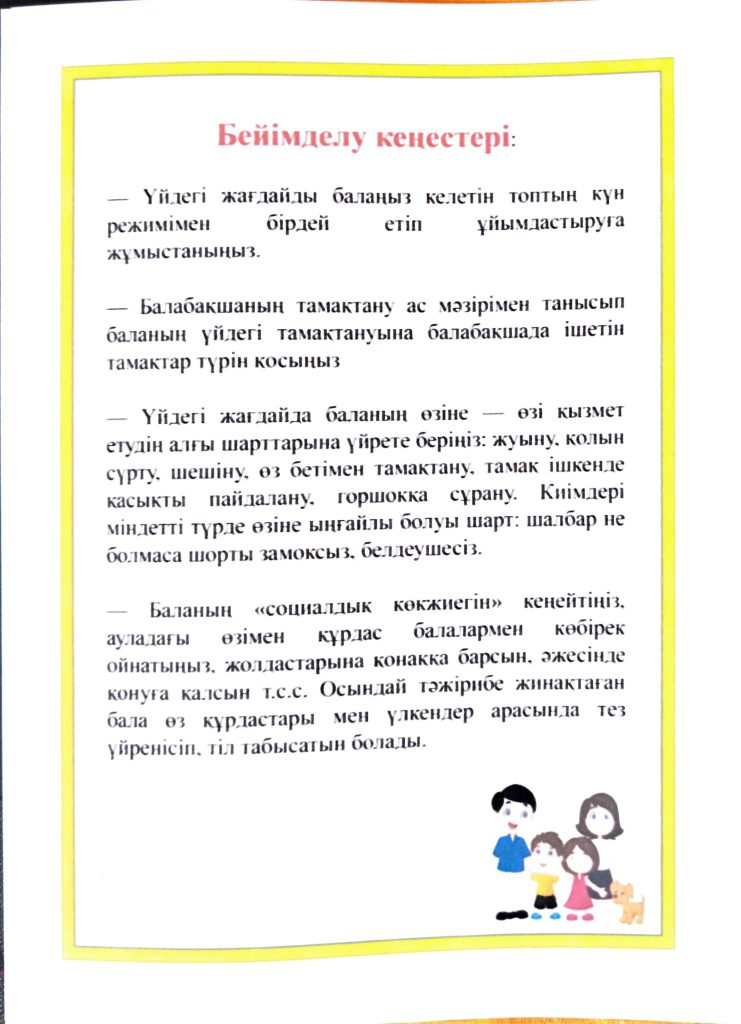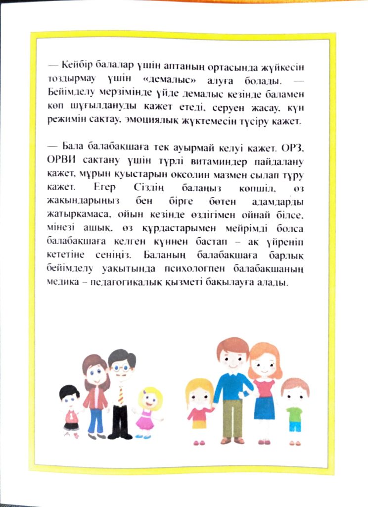 БАЛАНЫҢ БАЛАБАҚШАҒА БЕЙІМДЕЛУІ